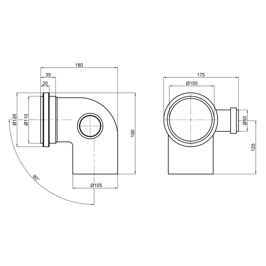 Відвід (коліно) TA Sewage 90° застосовується при монтажі в системі внутрішньої каналізації, має відведення діаметром 50 мм і спрямований вправо. Монтаж такого фітинга служить для відгалуження труб від основного стояка. Матеріал виробу - високоякісний поліпропілен. Має розтрубну конструкцію, що полегшує і спрощує монтаж каналізації.