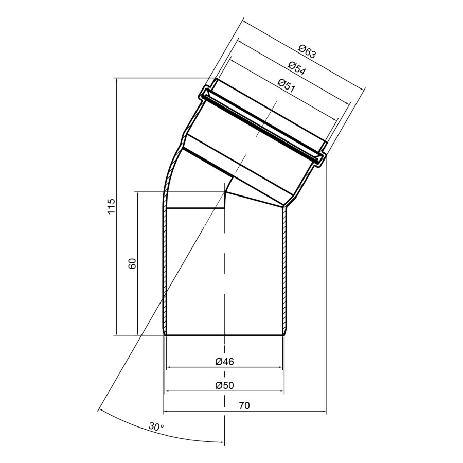 Відвід (коліно) TA Sewage, розмір підключення даного фітинга 50 мм в діаметрі, застосовується при монтажі в системах внутрішньої каналізації, для повороту каналізаційного трубопроводу під невеликим кутом, який становить 30°. Матеріал виробу - високоякісний поліпропілен. Має розтрубну конструкцію, що полегшує і спрощує монтаж каналізації.