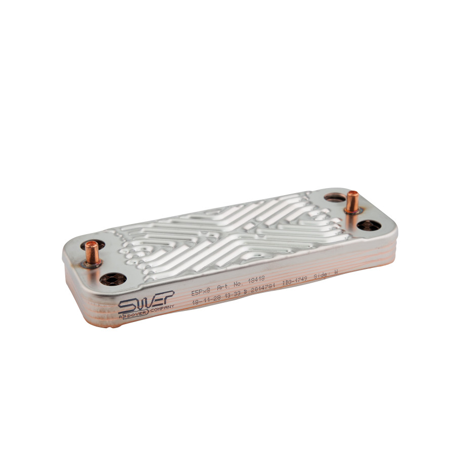 Теплообмінник SWEP (10 пластин) 7021820018 монотермічний є конструкцією з міді. Це мідний "змійовик" з ребрами і призначений для нагрівання води контуру опалення.