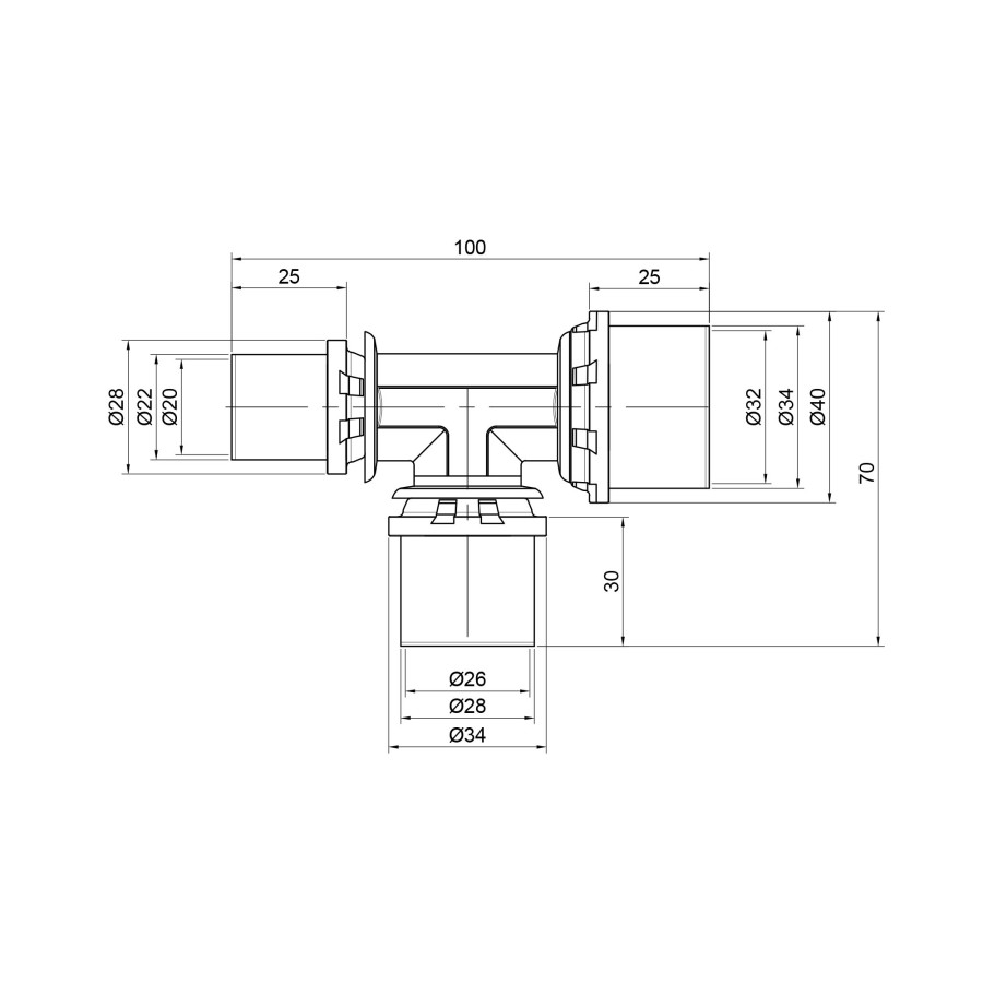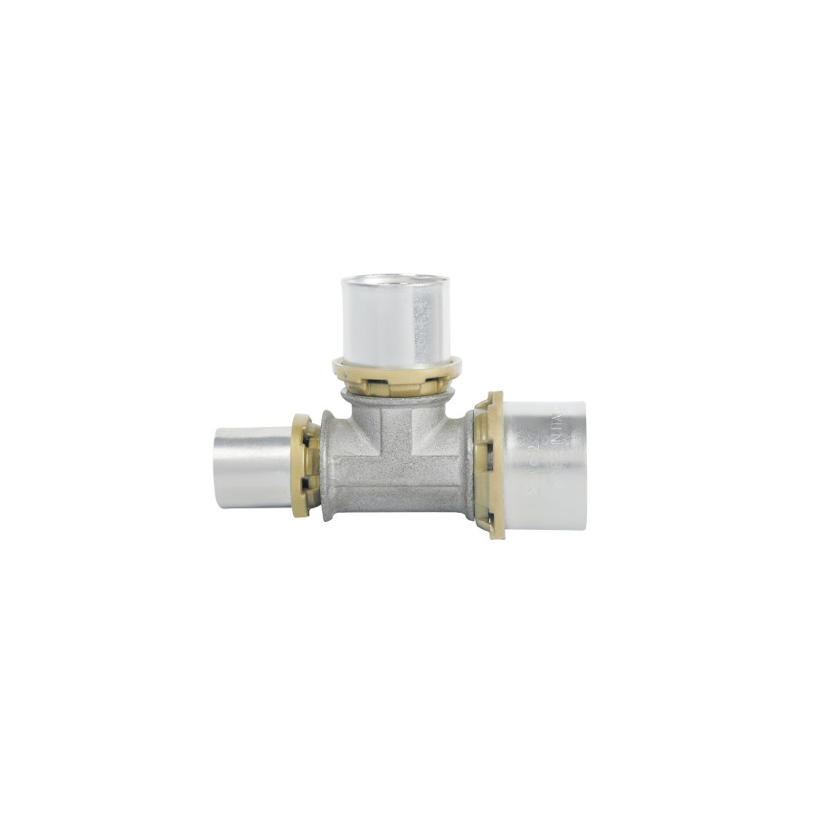 Прес-фітинг трійник Sempiter призначений для металопластикової труби для монтажу з радіальним пресуванням. Застосовується в системах водопостачання, опалення, і охолодження. Окремий прес на кожен діаметр труби стискає гільзу з нержавіючої сталі, яка надійно фіксує трубу на фітингу. Механічне з‘єднання забезпечує спеціальний профіль фітинга і гільзи з нержавіючої сталі, які були розроблені спеціально для того, щоб пресування відбувалося трьома різними профілями.
